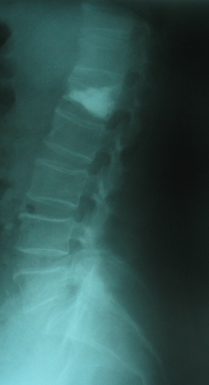 Kemik erimesine (osteoporoza) bağlı omurga kırığı olan hastada vertebroplasti (çimento ile dolgu) tedavisi